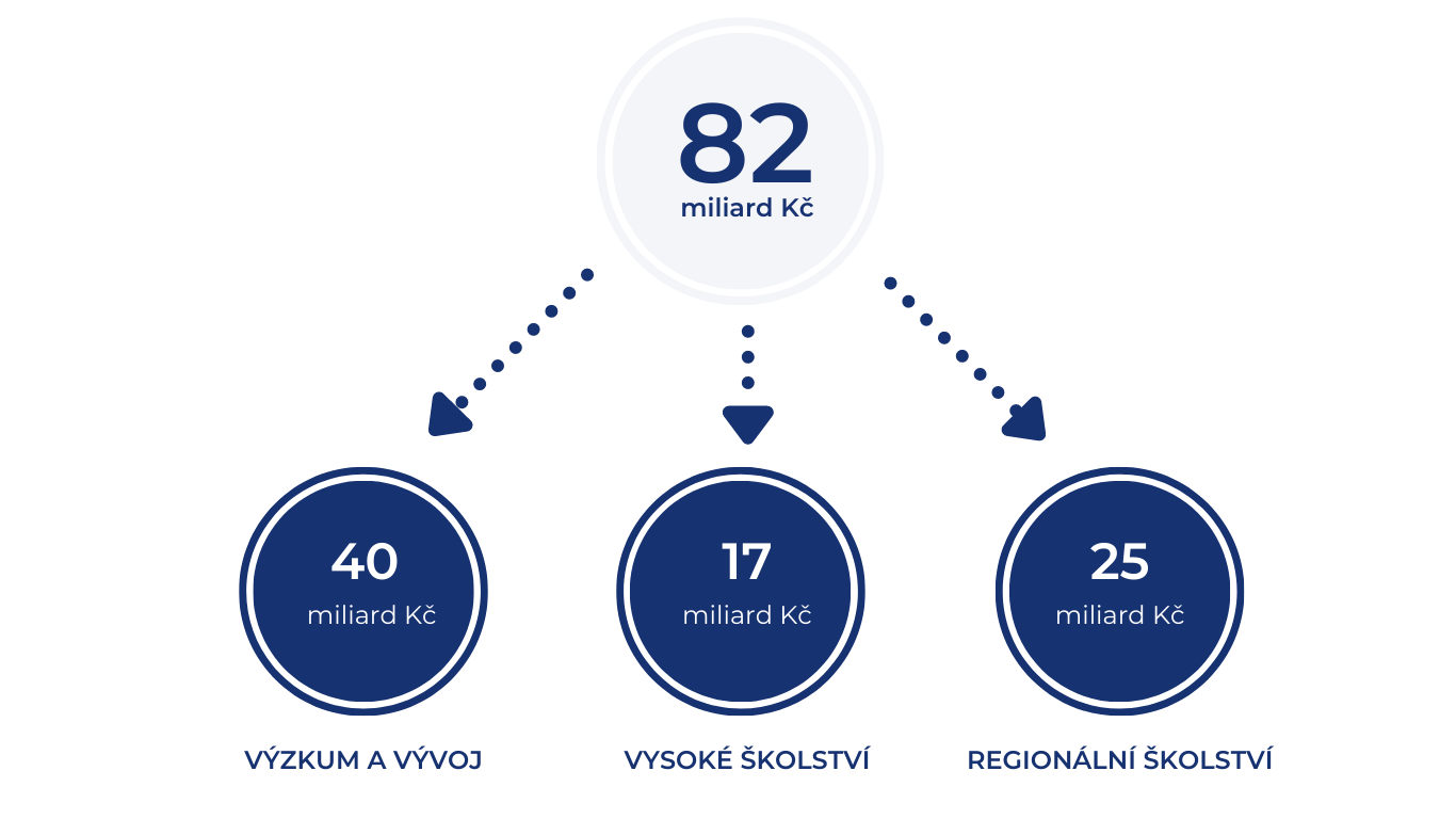 Aktualizované rozdělení alokace mezi jednotlivé oblasti vědy, výzkumu, vysokého a regionálního školství vyplývá ze současného odhadu měnového kurzu a zahrnuje pouze prostředky, které budou poskytnuty konkrétním příjemcům, tj. je již očištěno od finančních prostředků potřebných na technickou pomoc, které jsou také součástí alokace operačního programu.