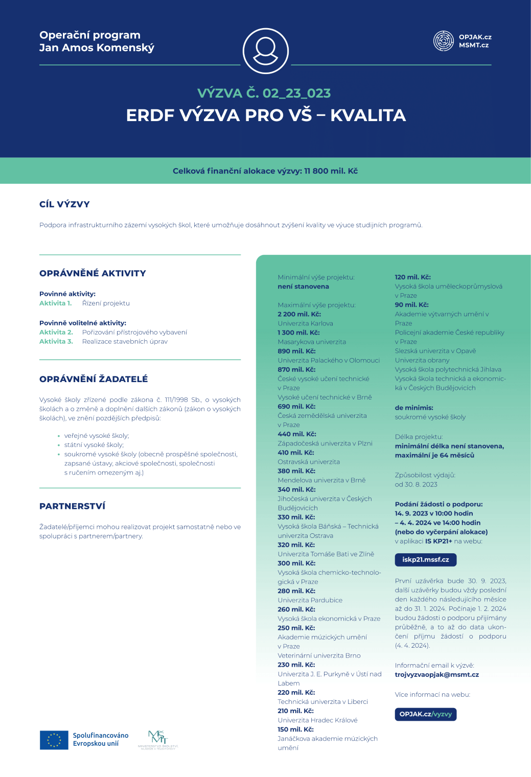 Výzva č. 02_23_023 ERDF výzva pro VŠ – kvalita